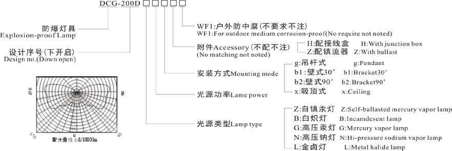 3、可配裝白熾燈、汞燈、高壓鈉燈、金鹵燈。