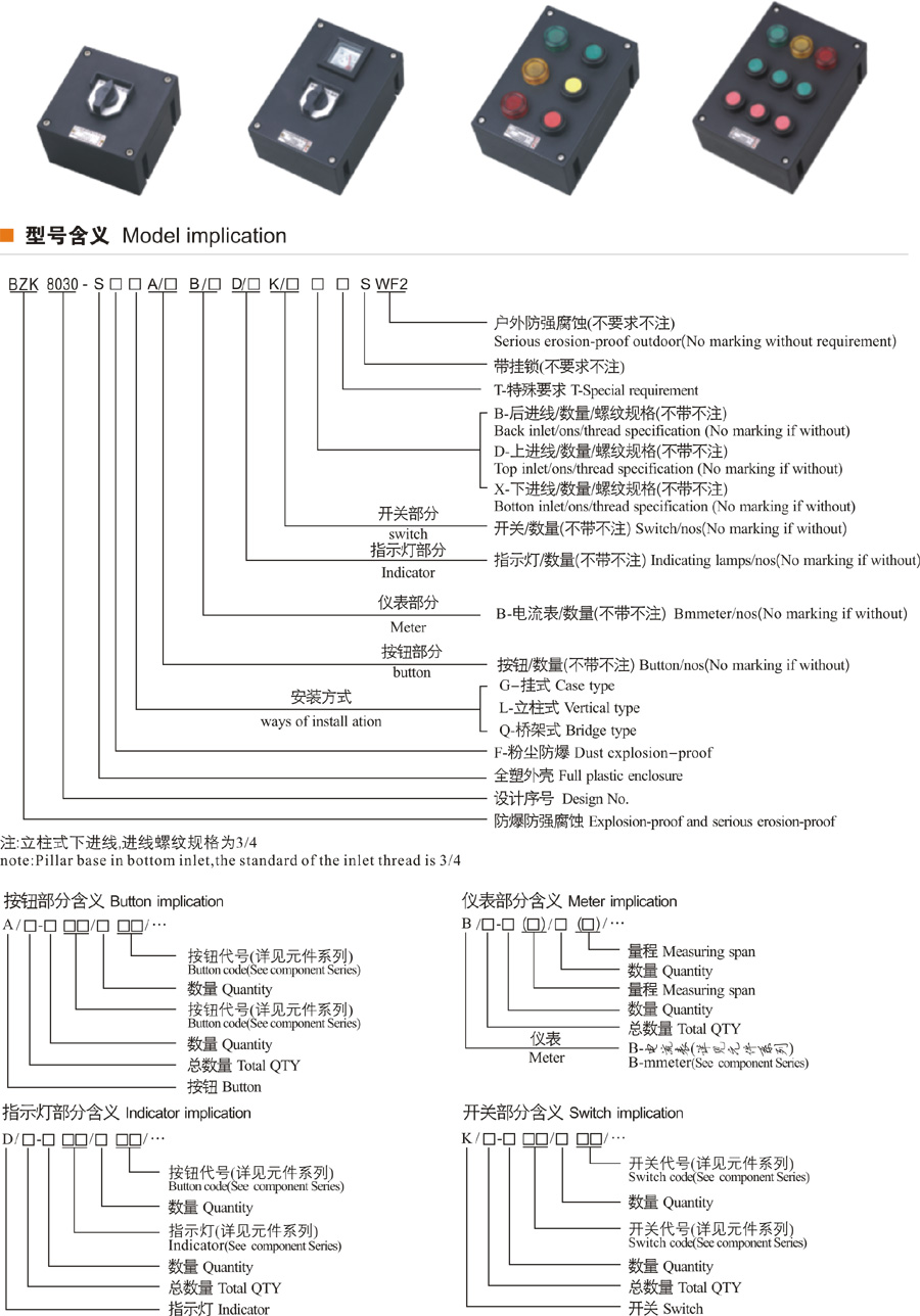 BZK8030-S系列防爆防腐主令控制器(操作柱)